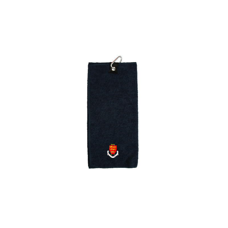 TC019 Microfibre Towel with hook for bag in navy embroidered with the Odiham & Greywell Cricket Club Logo.One Size.